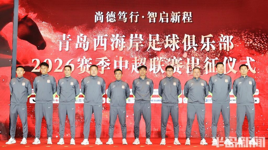 在出征仪式上,本赛季的教练组成员和新援一一亮相,主教练郑智与前国脚黄博文、梅方、李雷雷和刘健组成了新赛季的西海岸教练组成员。
