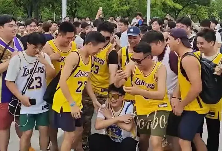 根据现场球迷返图,在上海当地的第二场活动开始之前,现场出现了身着金州勇士队库里30号球衣的粉丝。其立即被现场身着湖人队詹姆斯23号球衣的粉丝包围,看似要给其“剃头”。