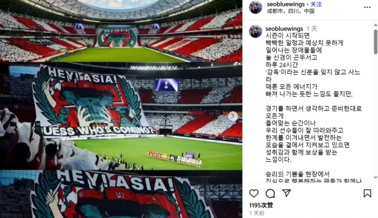 8月14日讯 蓉城击败曼谷联晋级亚冠精英联赛正赛,球队主帅徐正源更新社媒,发长文谈到晋级感受。